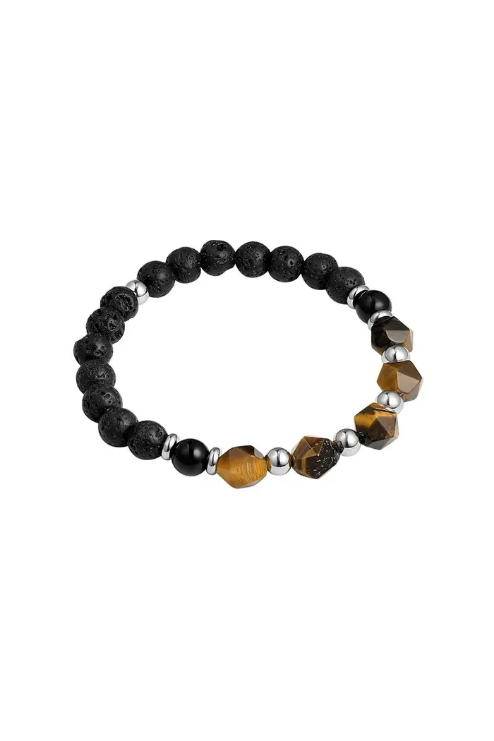 Ben jij op zoek naar een prachtige armband voor heren? Check dan snel deze prachtige zwarte kralen armband met bruine kralen details! De armband is erg trendy en perfect voor een casual look. Daarnaast heeft deze armband een stoer uiterlijk en kan de armband perfect gedragen worden bij een outfit met meerdere bruine accenten. Deze prachtige armband is gemaakt van stainless steel en steen en heeft een elastieken sluiting. De armband heeft een afmeting van 18 cm