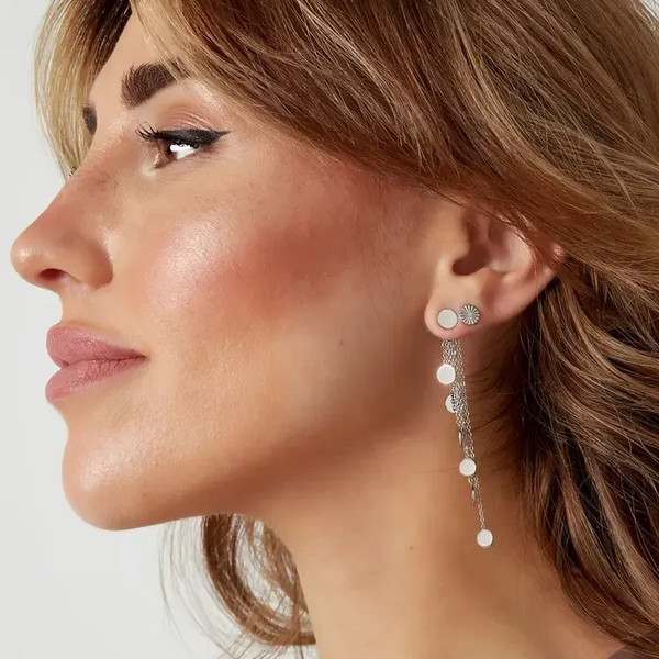 De oorbellen zijn gemaakt van stainless steel. De oorbellen hebben een afmeting van 7,6 cm