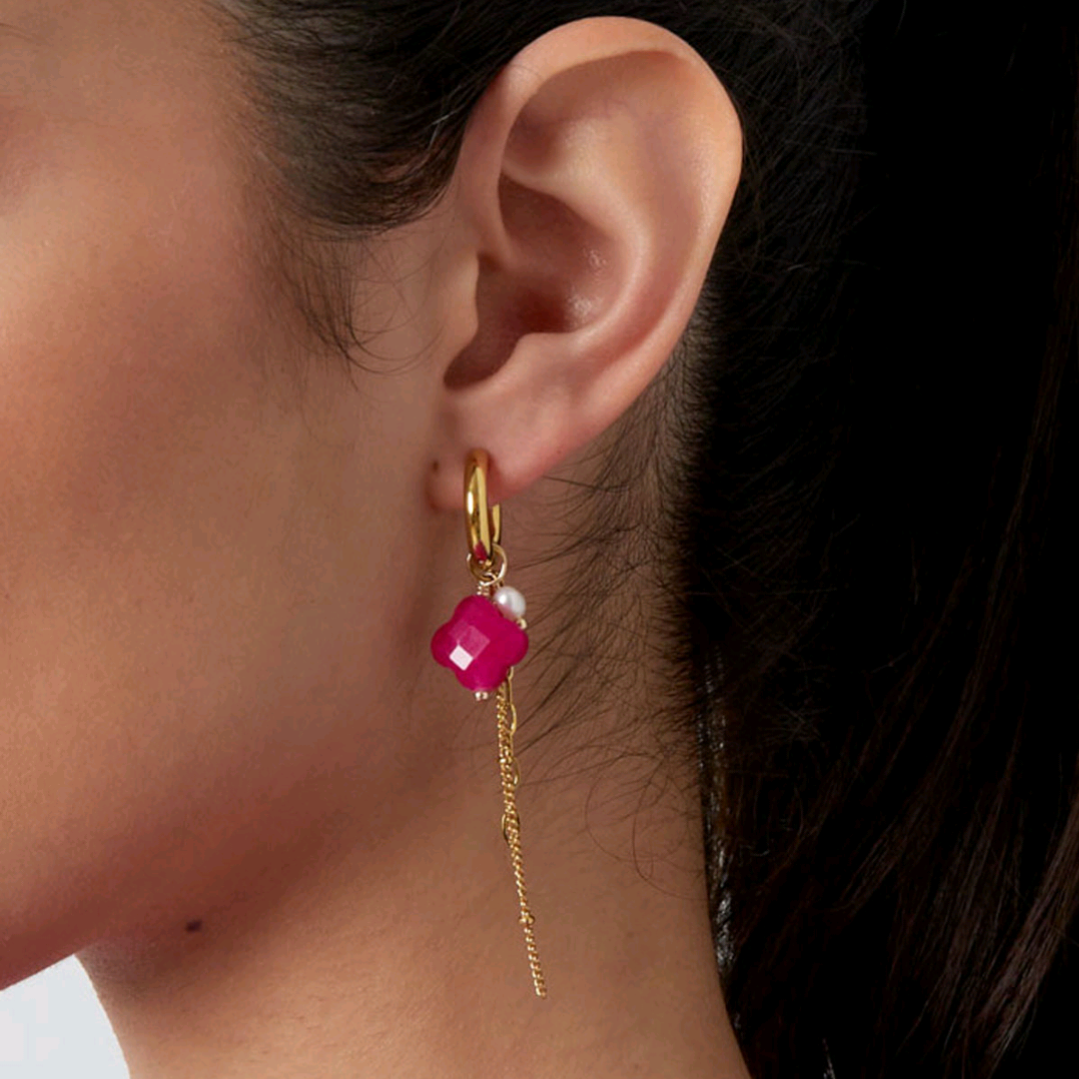 De oorbellen zijn gemaakt van stainless steel, steen en parels. De oorbellen hebben een afmeting van 7 cm!