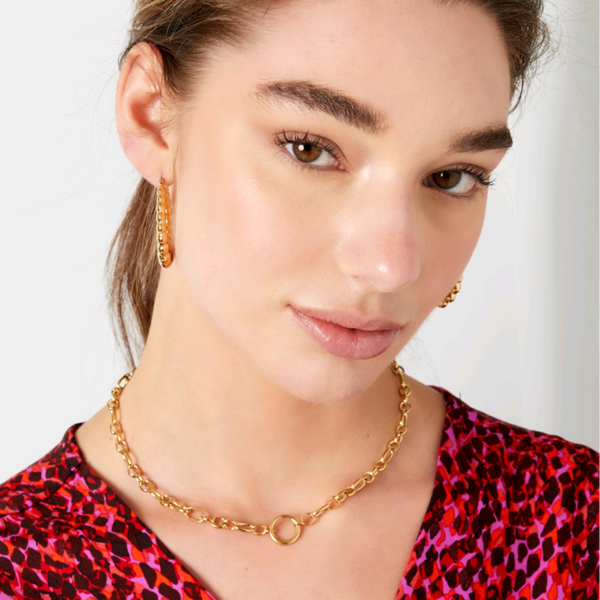 Het sieraad is perfect te combineren met meerdere kettinkjes maar kan ook prima enkel gedragen worden! Schakel ketting rond is gemaakt van Stainless steel en heeft een lengte van 40 cm, verstelbaar tot en met 45 cm