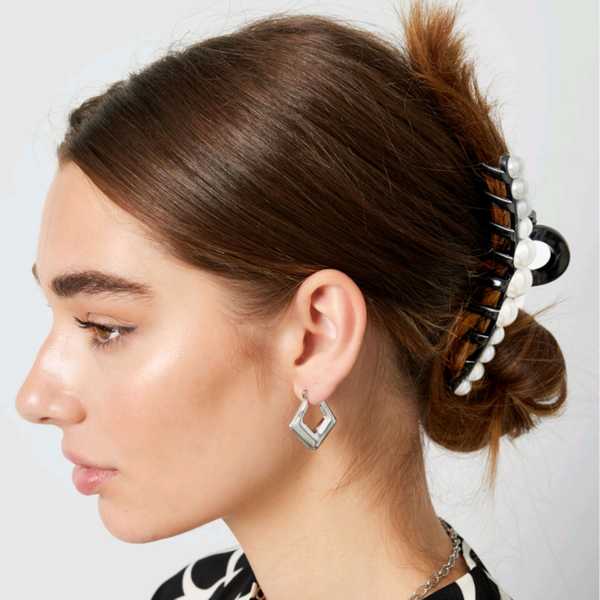 De haarklem is gemaakt van plastic en heeft een afmeting van 13 cm